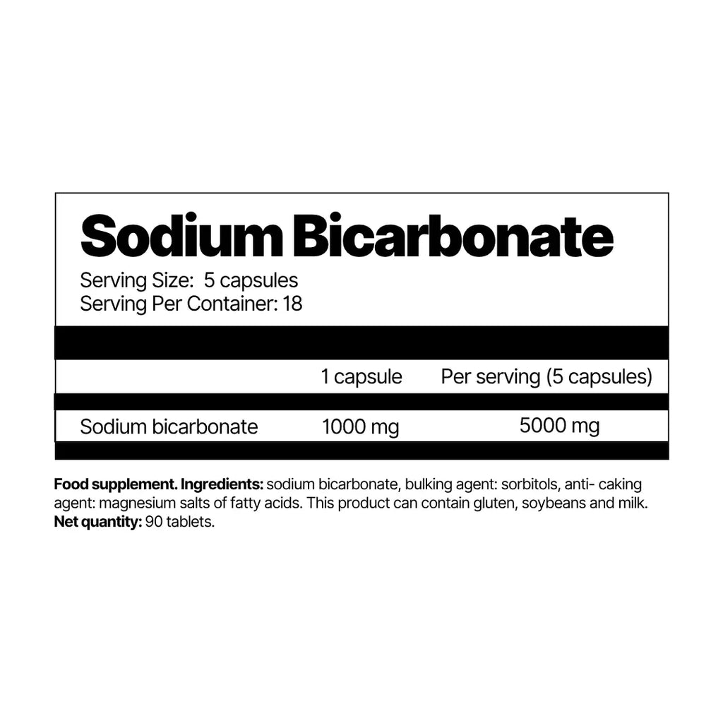 Sodium bicarbonate tablets help you load up on sodium bicarbonate before training or a race, thus increasing your sprint endurance through lower muscle acidity.